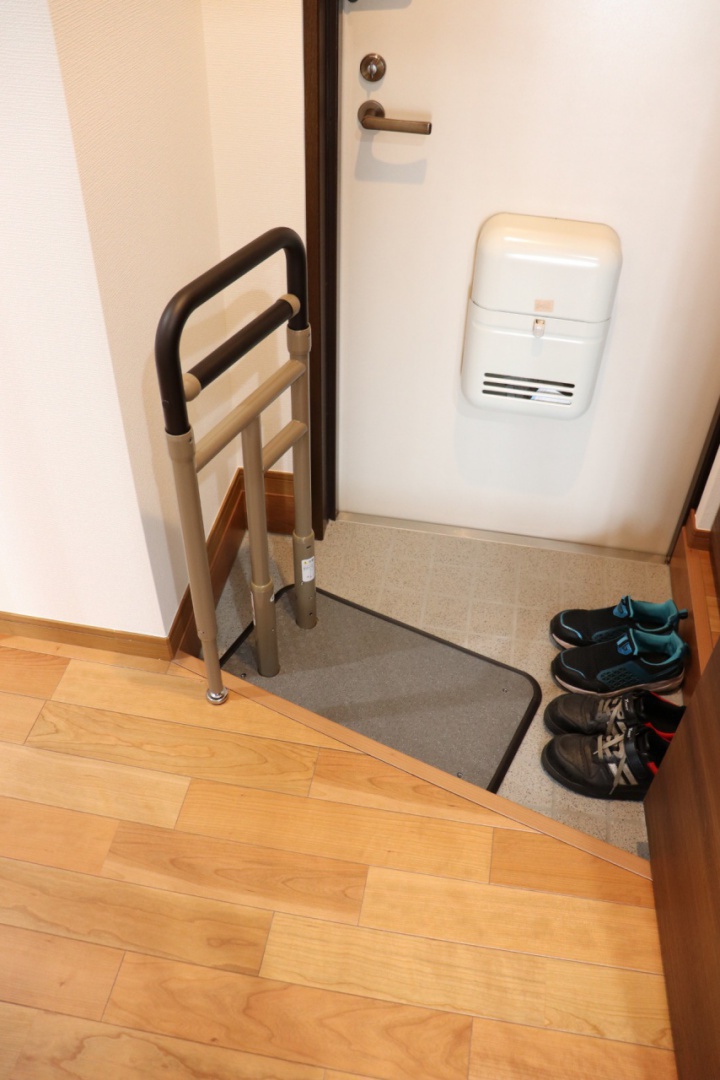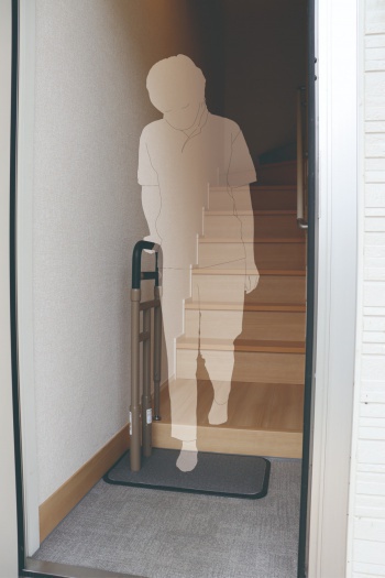 従来の手すりと比べてよりコンパクトになり、手すりの設置が難しかった玄関にも設置ができます。またコンパクトなため、住環境を広く使えるようになり、転倒予防にもつながります。